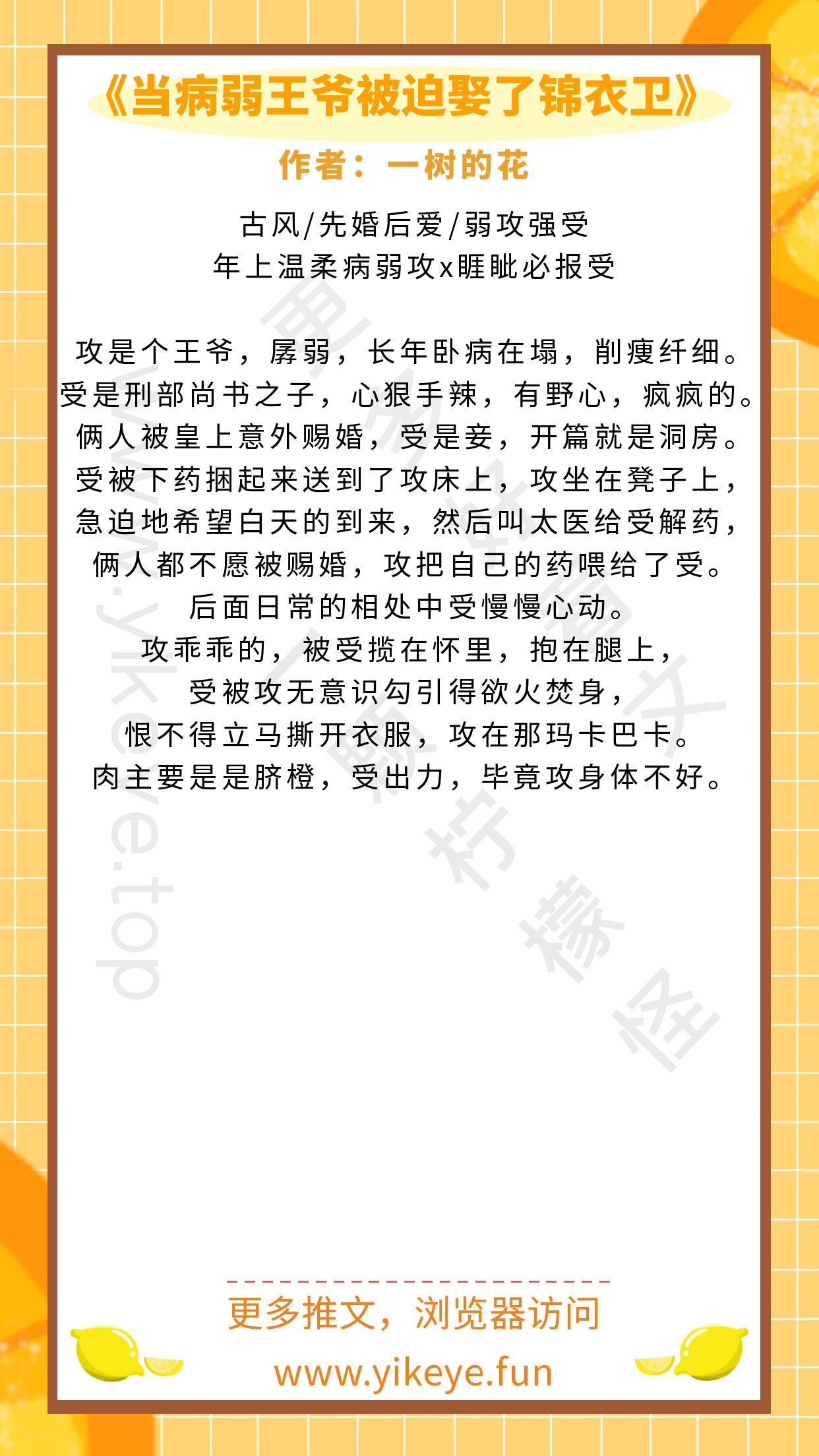 《当病弱王爷被迫娶了锦衣卫》作者:一树的花